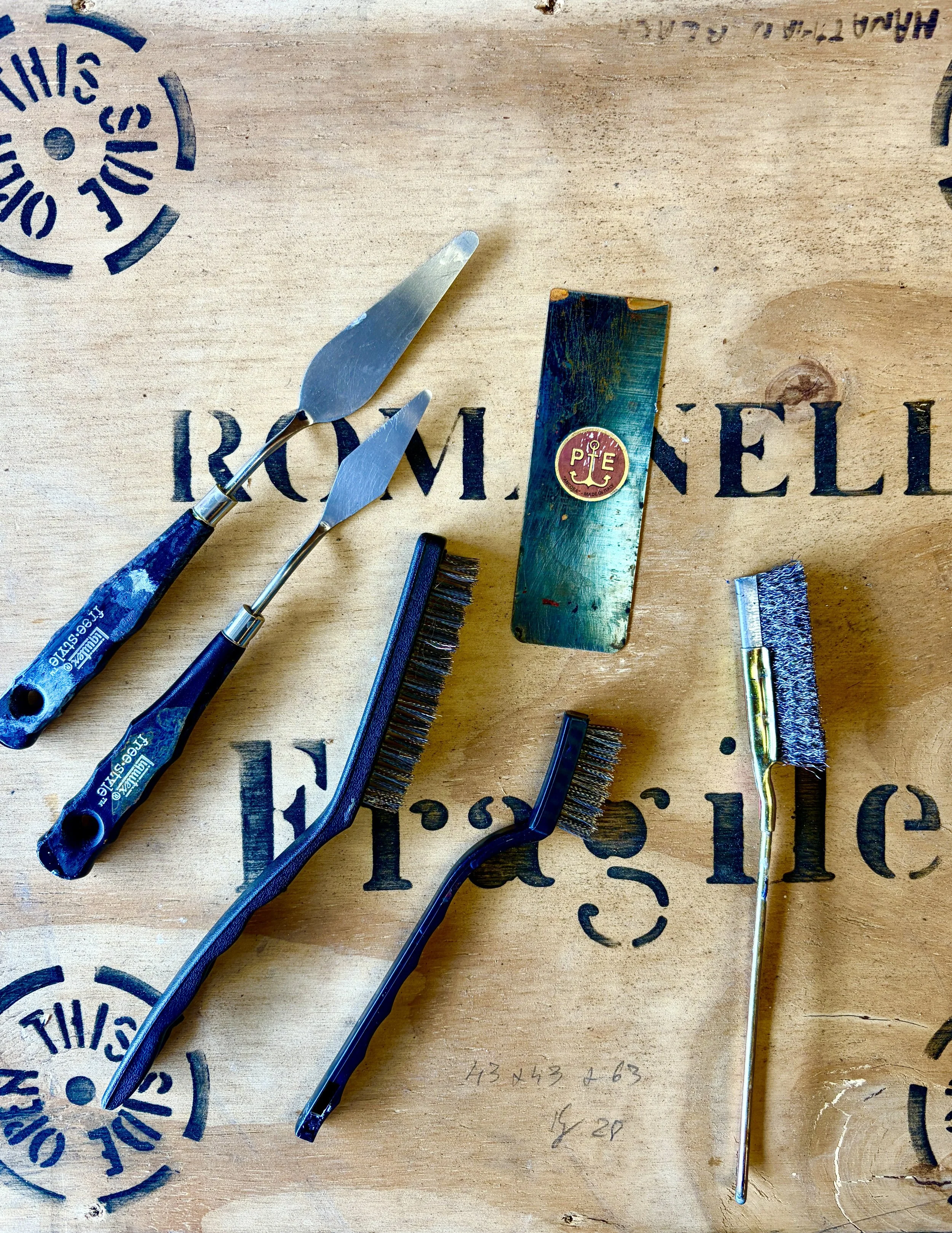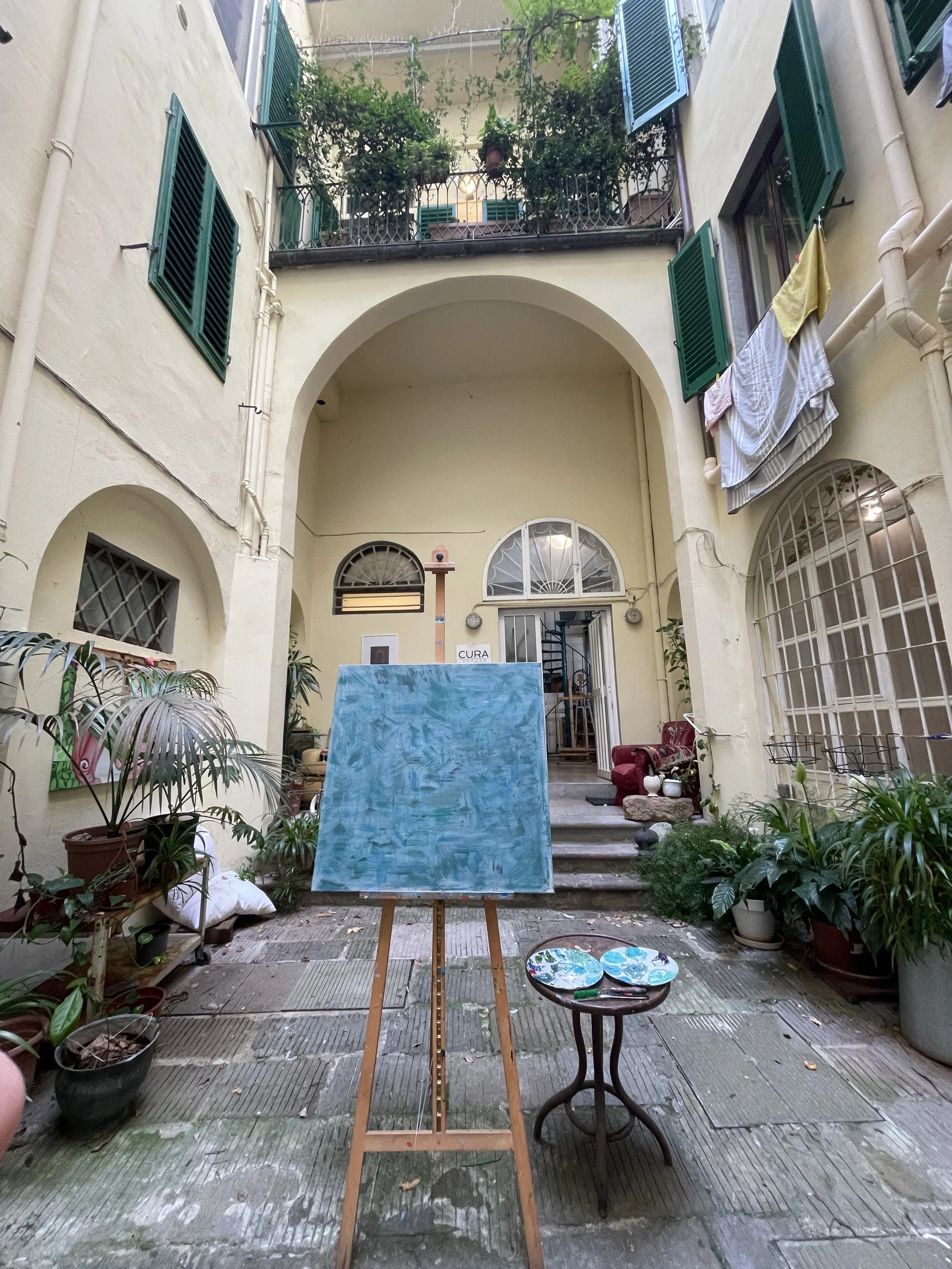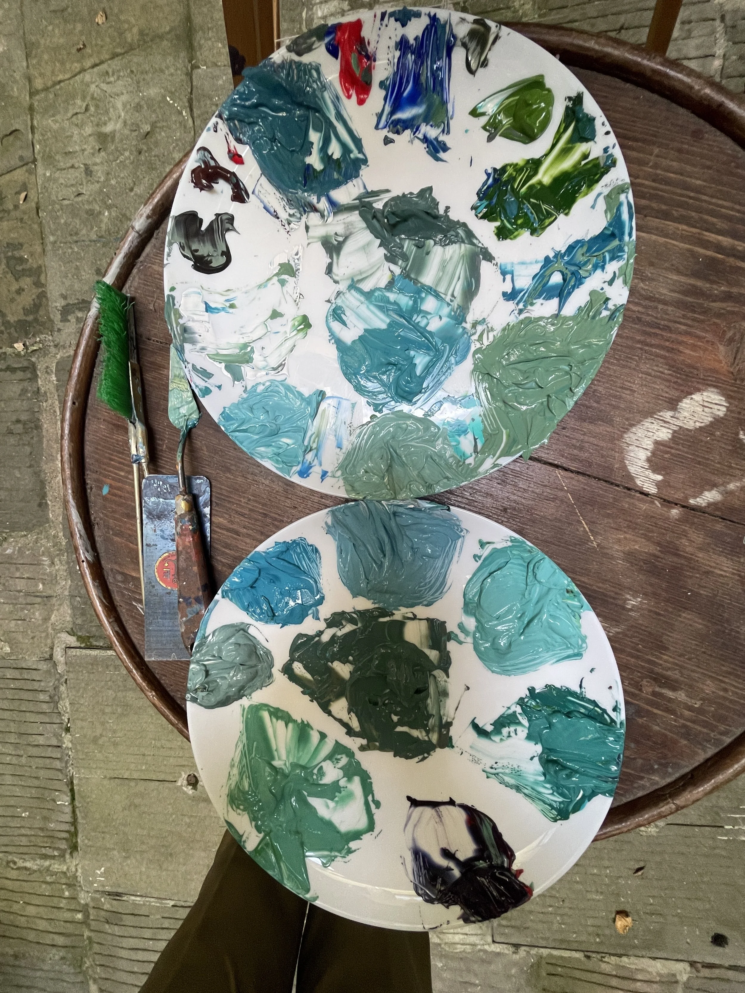 Here i experienced with texture and my spatula. It was very light after 2 coats, so i kept going layering more paint till it felt done.