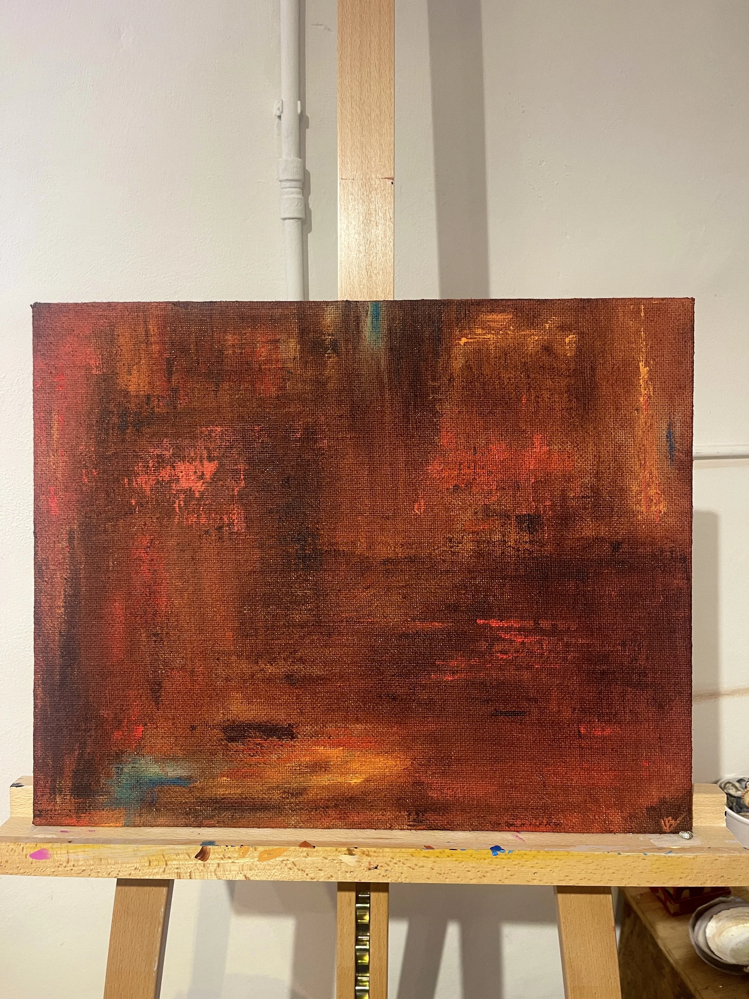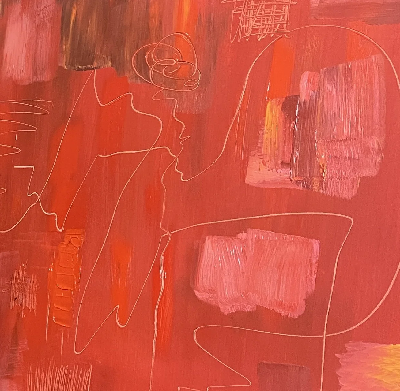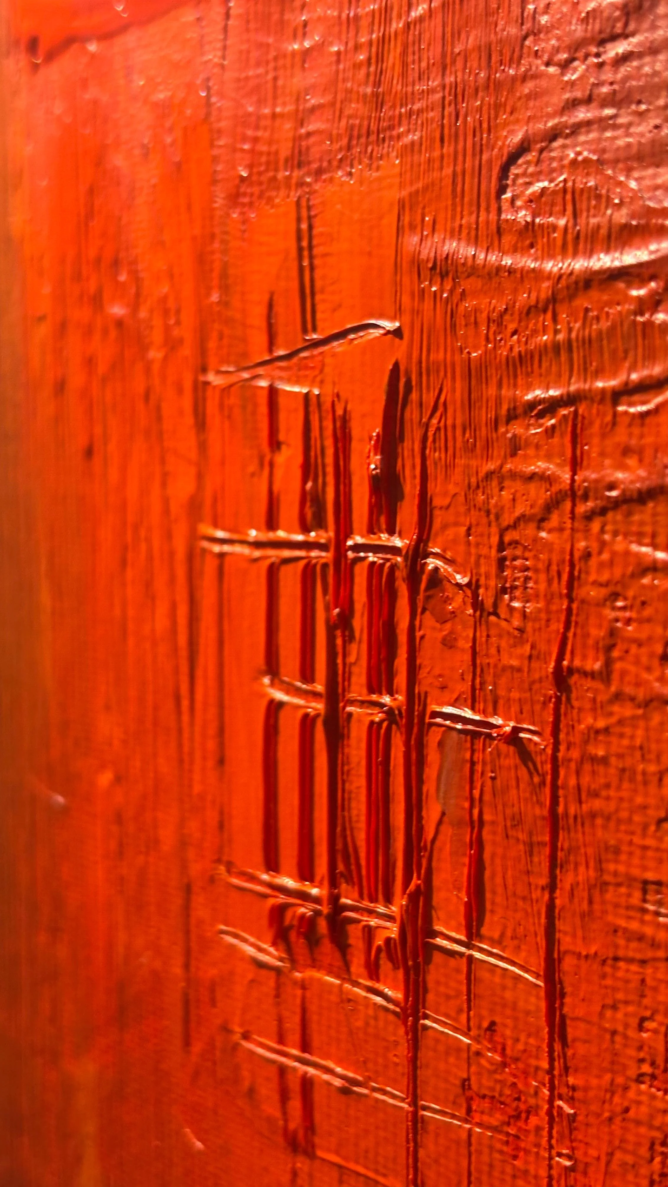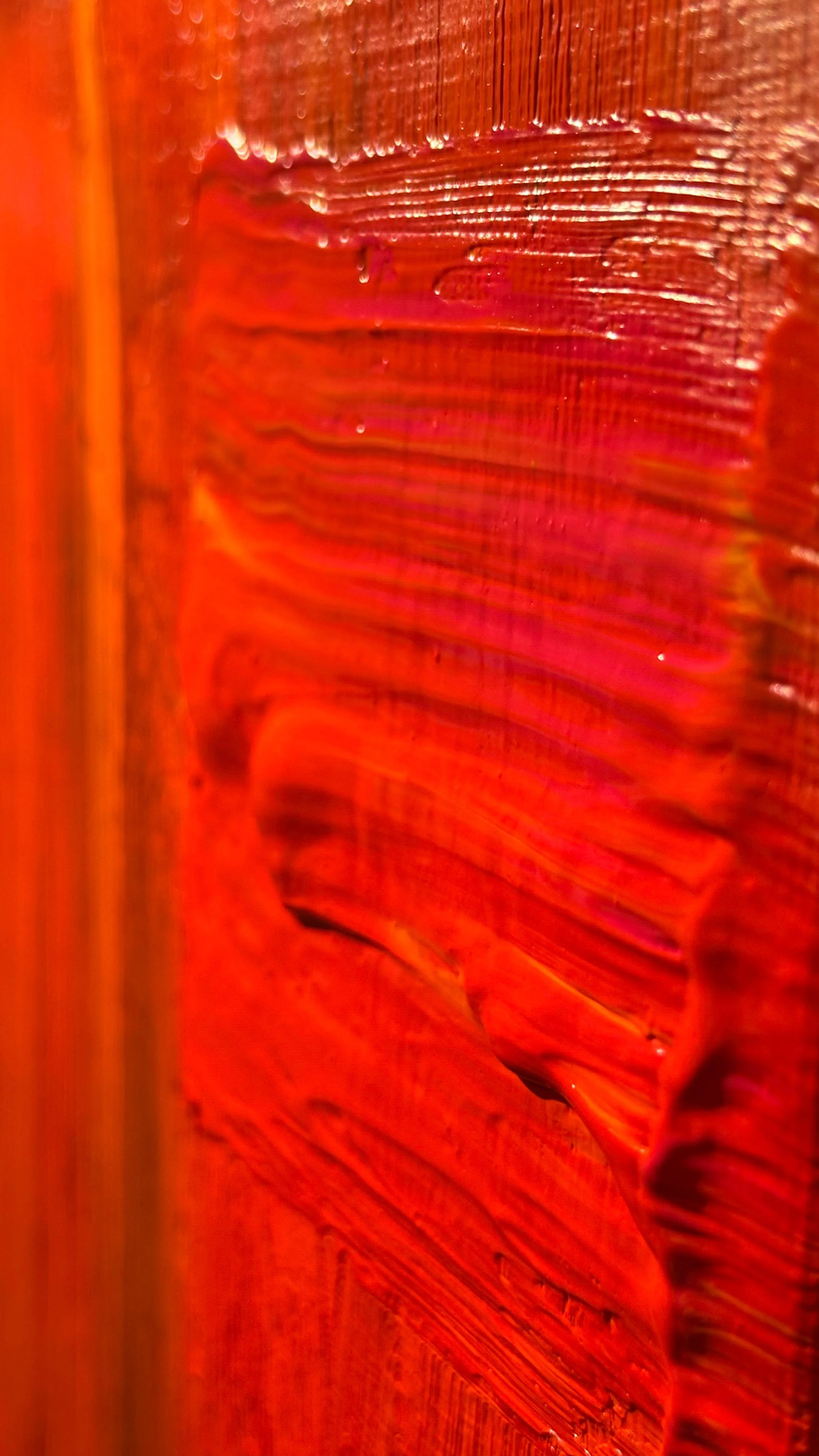 My last painting, ending a summer and fall of new found passion. After falling back into blues and greens over and over, i felt like painting a bold red abstract! Thick texture, bright and brilliant reds, four layers.