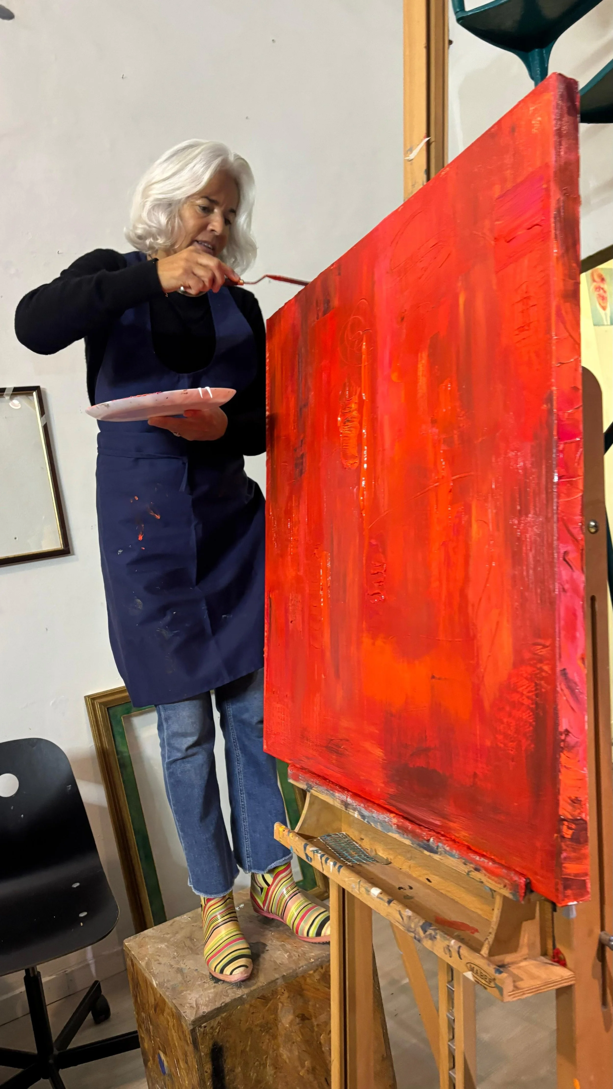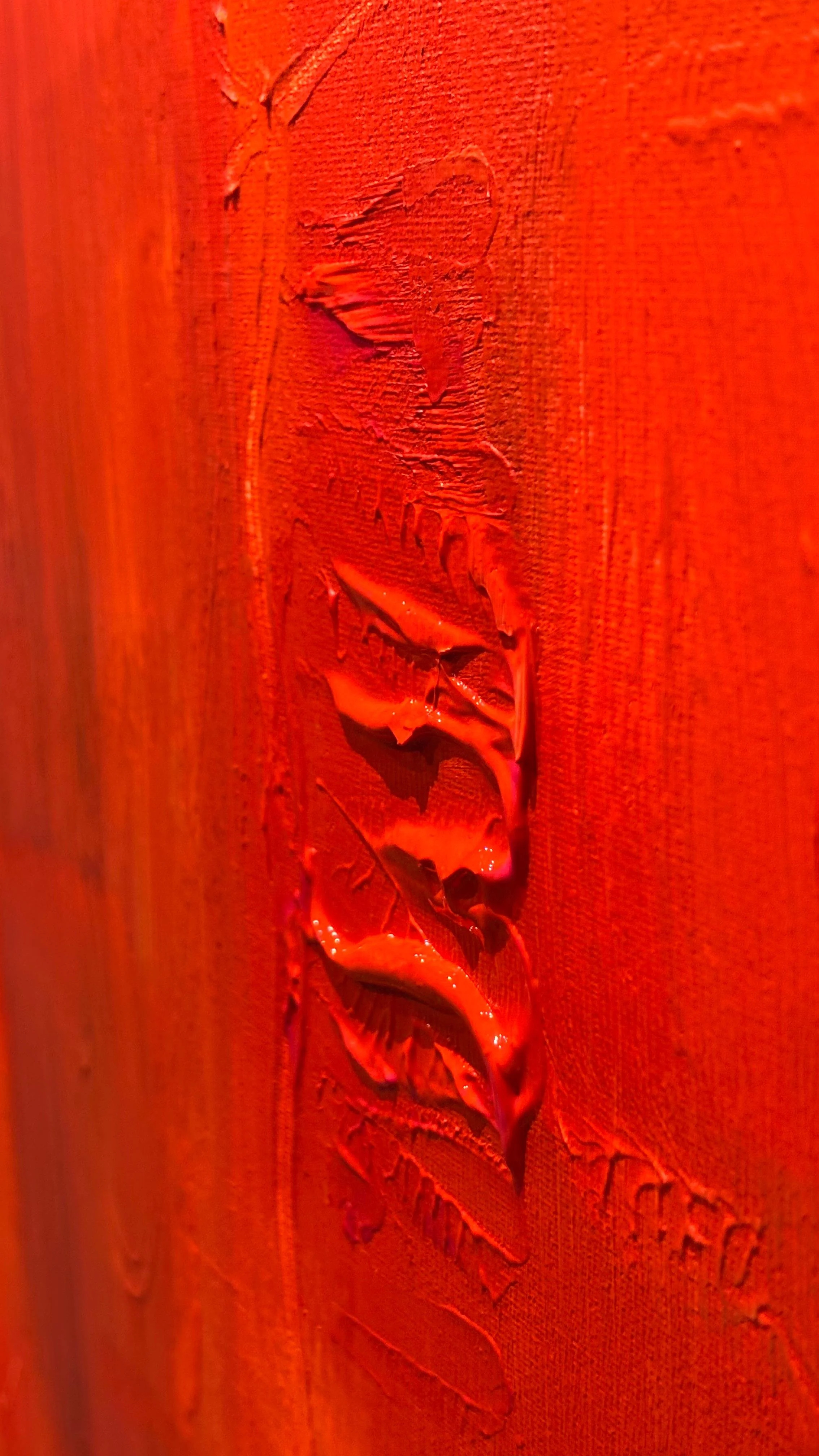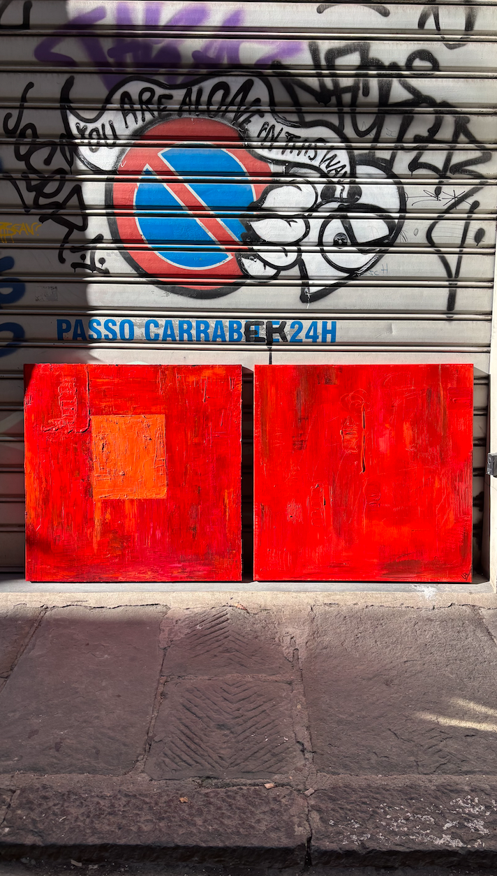 Painting with so much red was extremely invigorating. On my way to the studio, suddenly i visualized a second version with a big orange square in the middle.