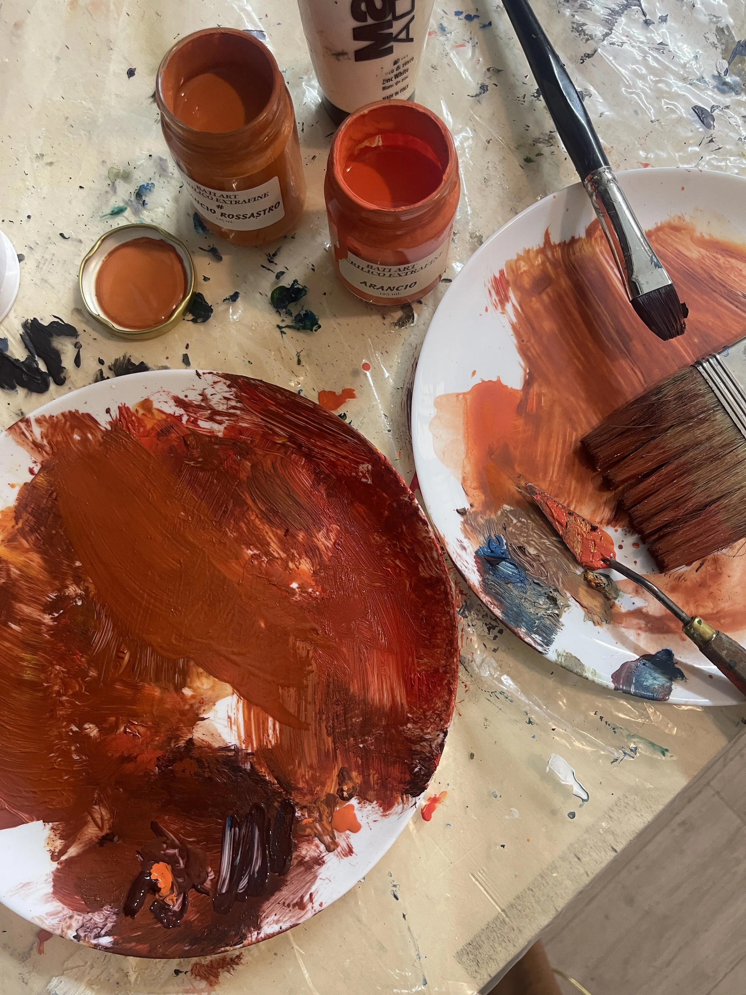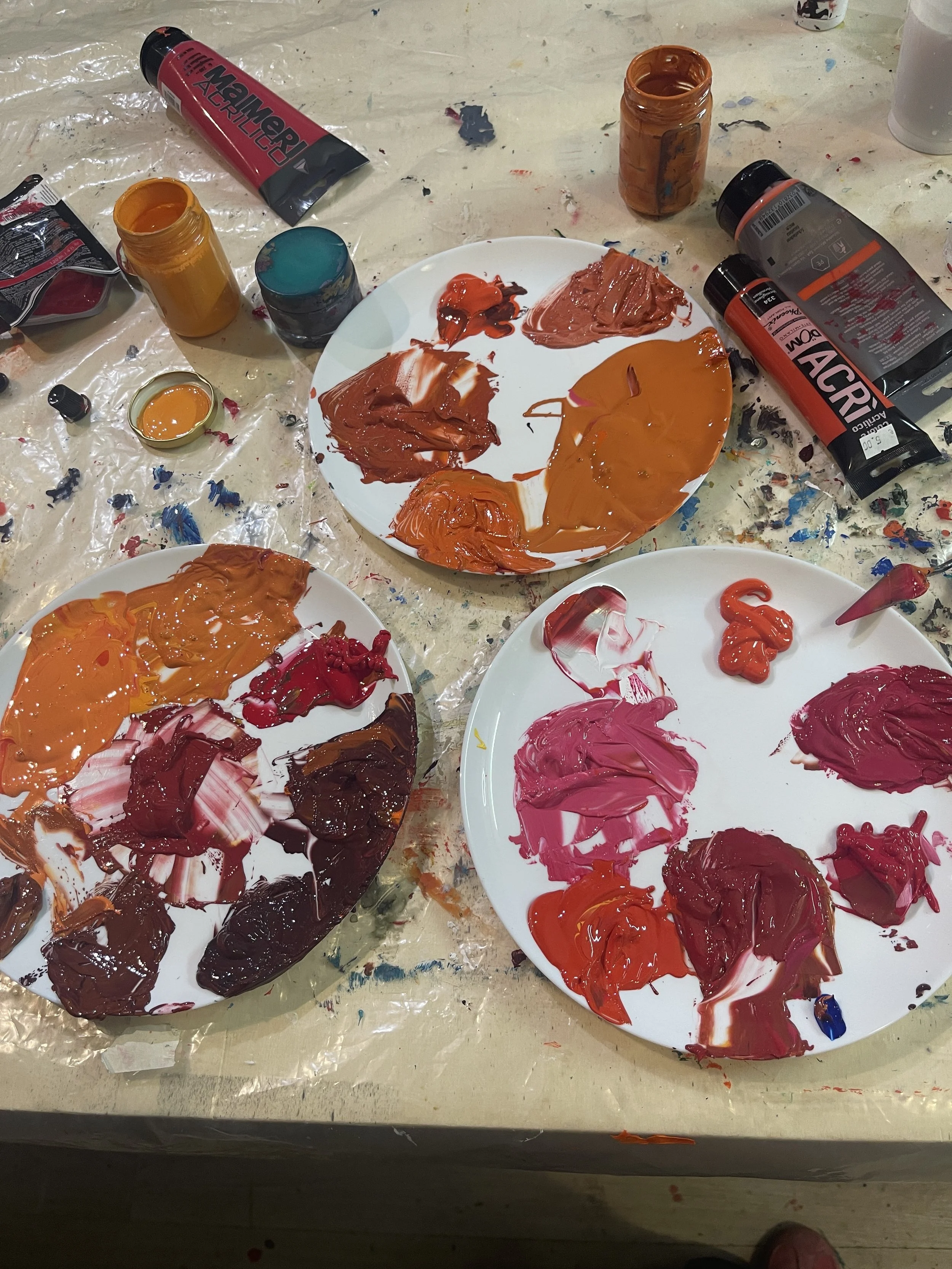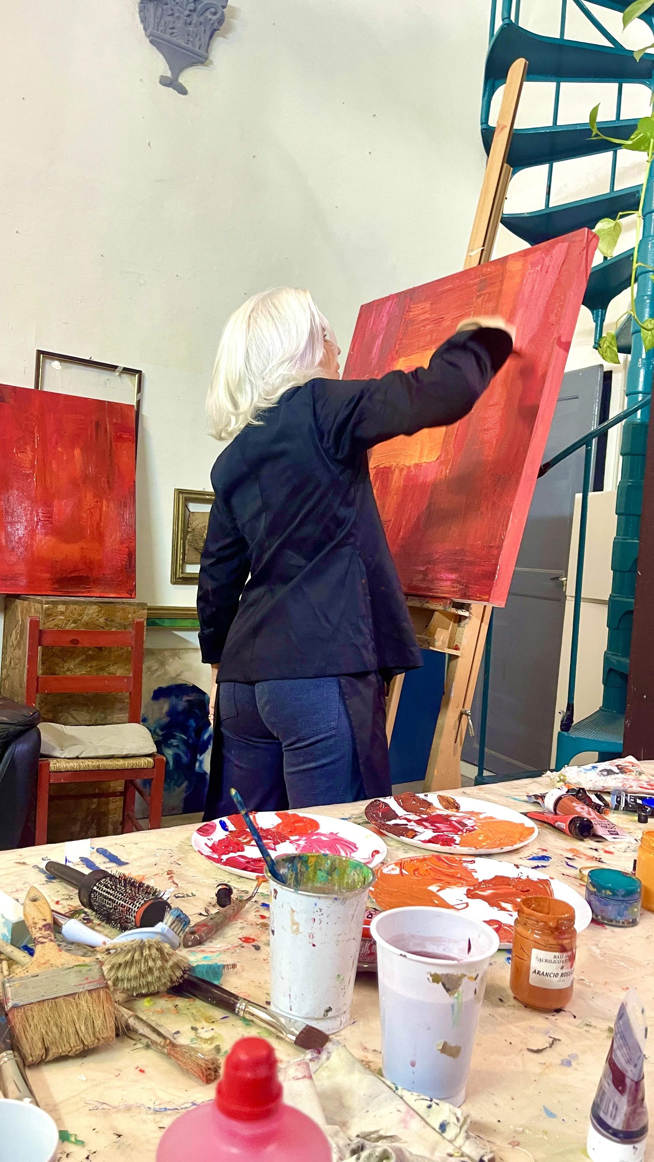 Painting with so much red was extremely invigorating. On my way to the studio, suddenly i visualized a second version with a big orange square in the middle.