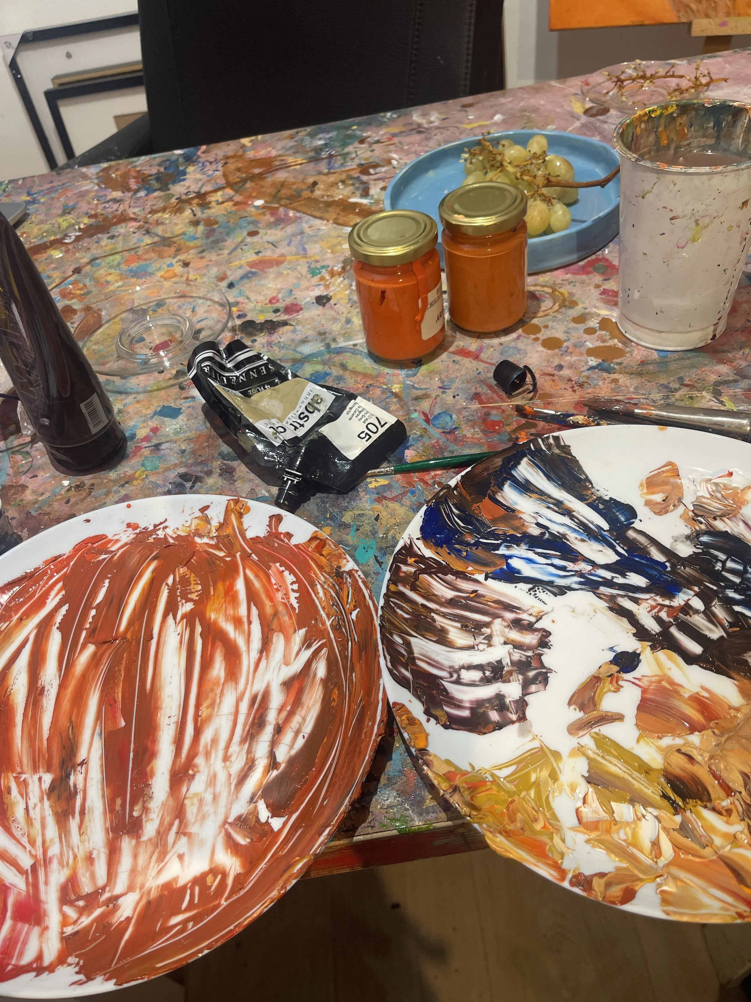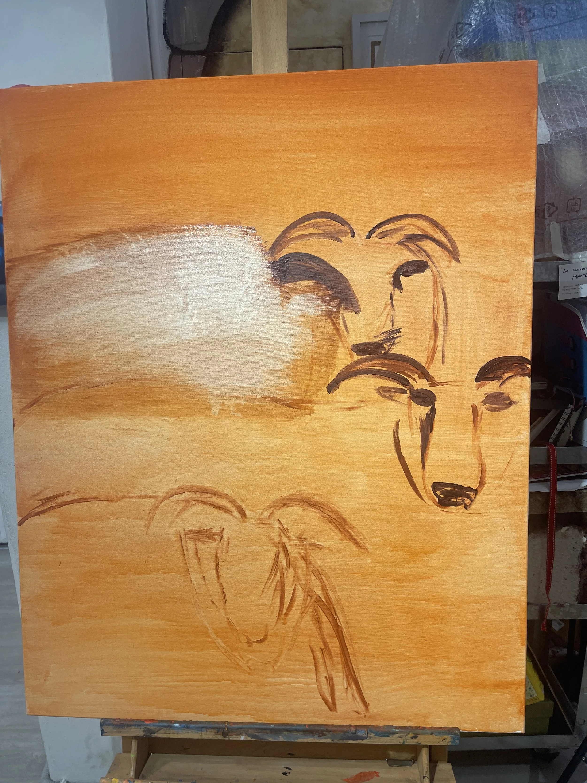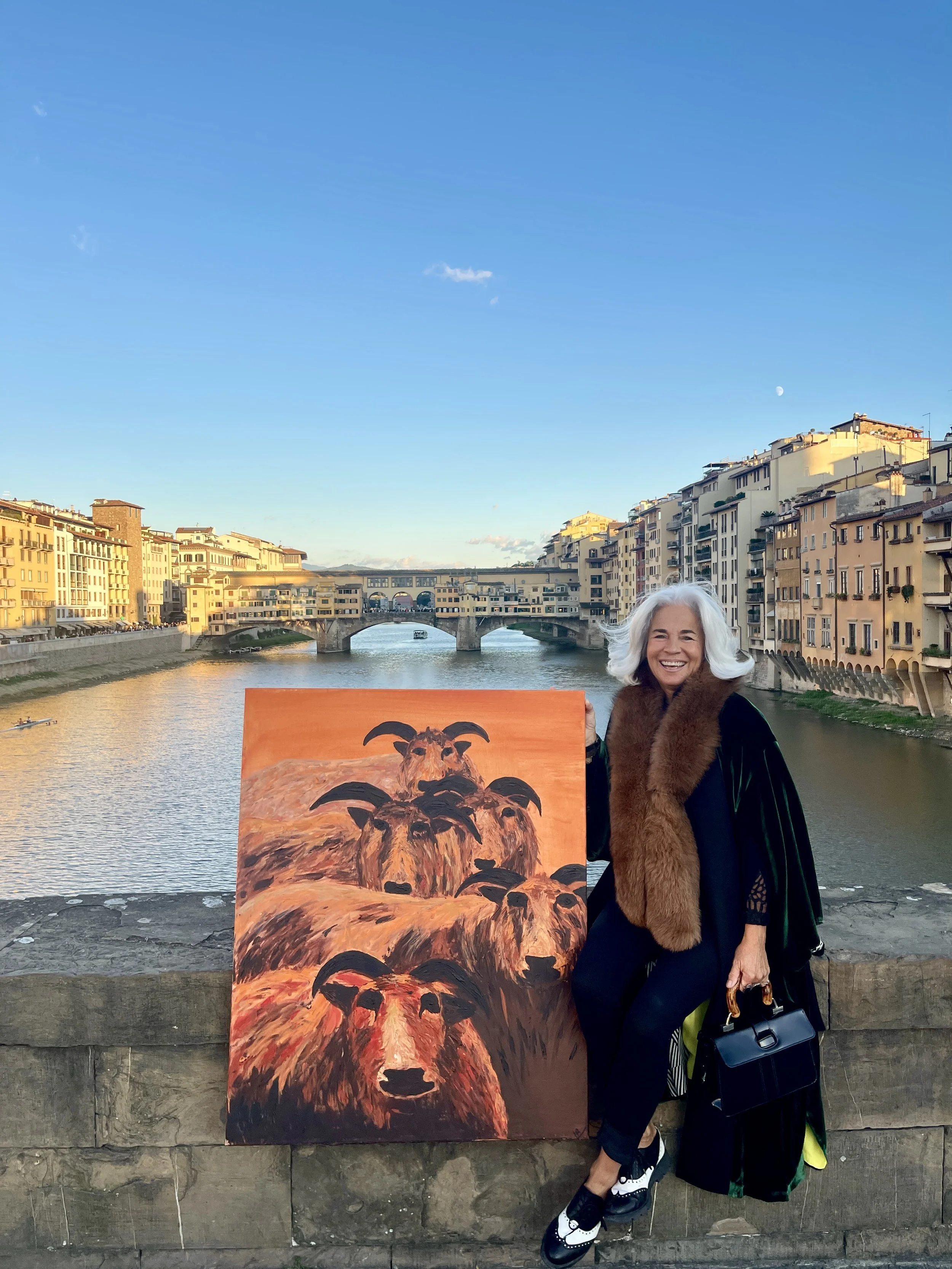 To return home from my studio is a lovely walk across the center of florence. I carry all my art home on foot. Some of those canvases a big! Here i stopped for dinner and the waiter brought a plate of food for my sheep. Only in italy!!!!